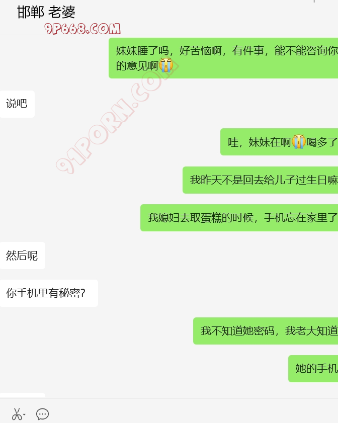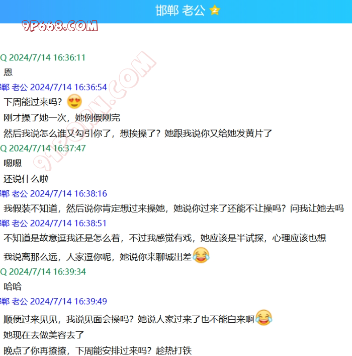 他偷偷拿老婆的手机加了我微信,过了一段时间给她打招呼,就说是可能以前玩探探的时候加的(他知道老婆以前聊过探探),她也没怀疑,慢慢聊的多了,和她挺有共同语言的。不过有一段时间不怎么回我信息了。后来我借口发现媳妇出轨(假的),跟她进入了性话题。开始给她看3p的视频,结果她喜欢看多人的,还幻想被强奸,真是极品哦。后来还跟她聊起了淫妻的话题,他老公也经常跟她说找男人草她。